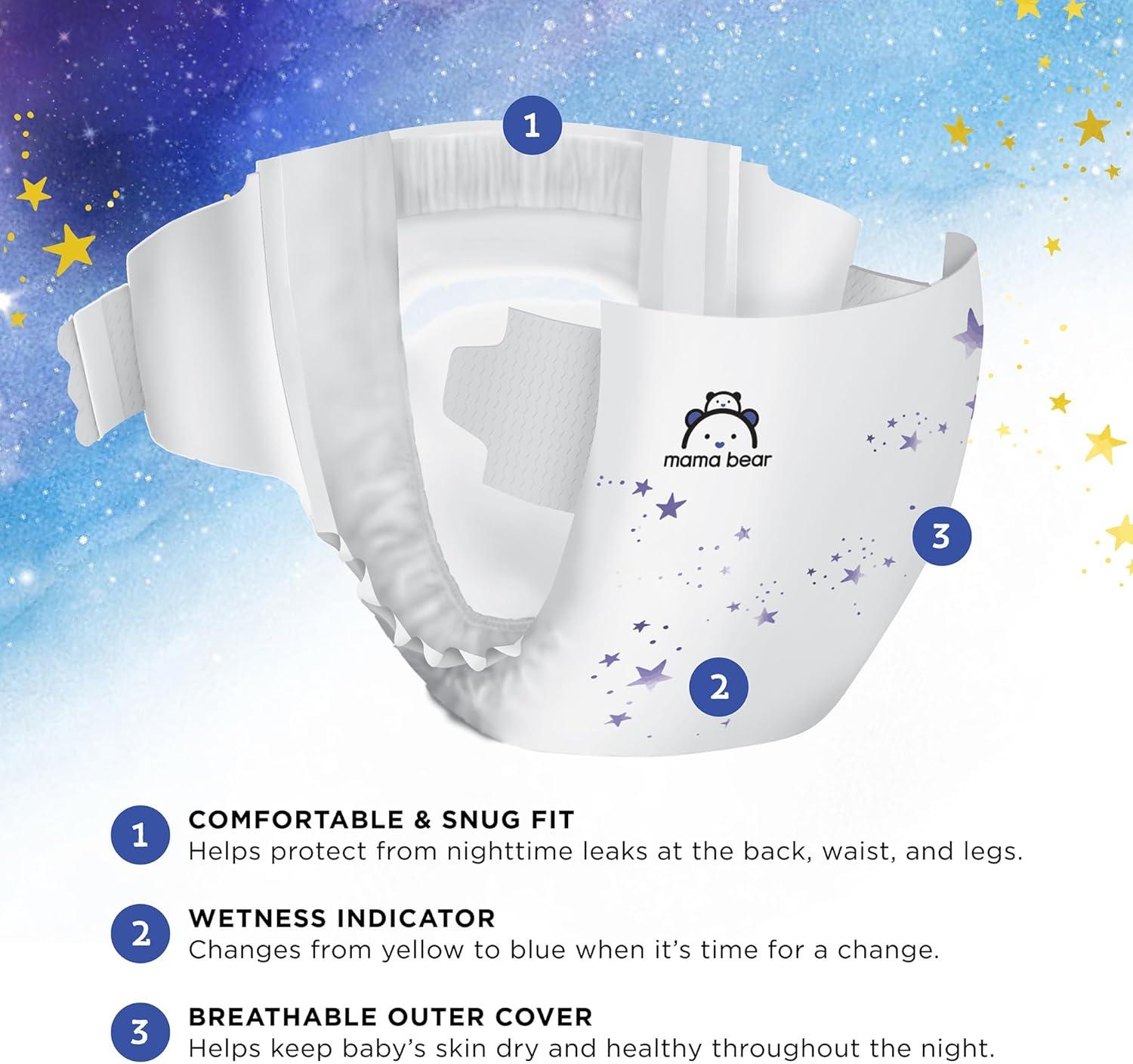Amazon Brand – Mama Bear Disposable Overnight Baby Diapers, Hypoallergenic, Night Time Protection, Size 4 (74 Count), White(Size 5 (62 Count))