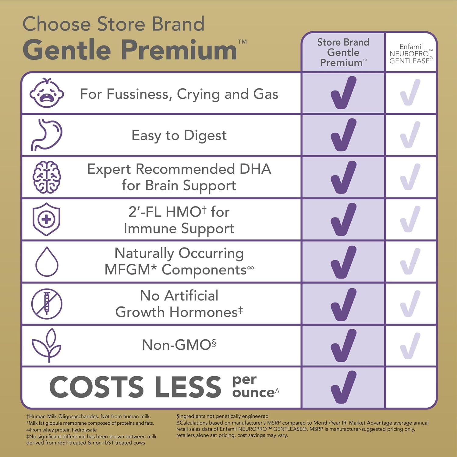 GENTLE ON TUMMIES: Mama Bear Gentle Infant Formula Powder is gentle on tiny, tender tummies, so it's easier to digest. Helps reduce fussiness, gas and crying. Compare to the nutrition of Enfamil NEUROPRO Gentlease