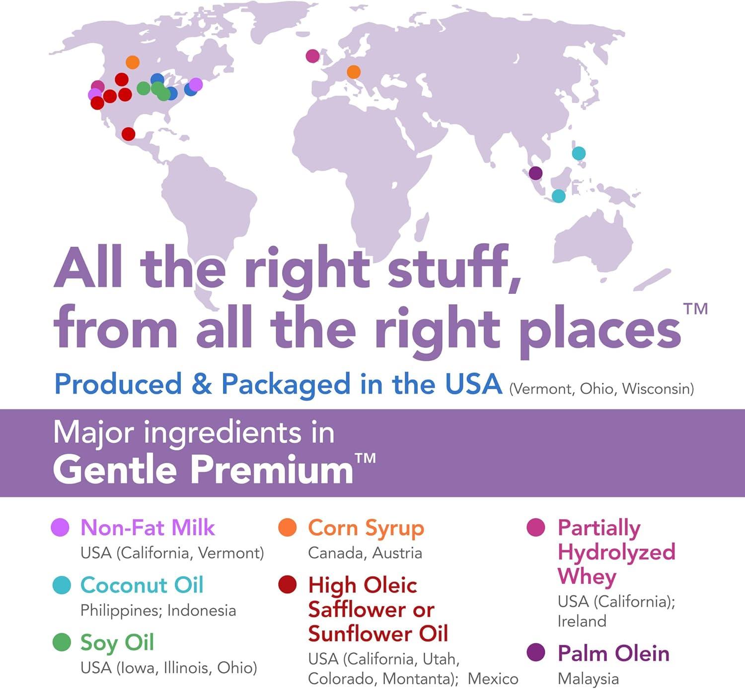 Compare to the nutrition of Enfamil Neuropro Gentlease. Mama Bear Gentle Premium Infant Formula Milk-Based Powder with Iron provides complete nutrition for baby's important first year. Gentle on tender tummies, this baby formula is specially crafted for fussiness, gas and crying. For newborns, birth through 12 months. With expert-recommended DHA to support brain development. Each serving contains trusted ingredients for immune support. Gentle Immune Blend 6 with 2’-FL HMO, Vitamin C and E, Selenium, Partially Hydrolyzed Whey Protein, Reduced Lactose (has 20 percent of the lactose compared to our full lactose, routine, milk-based Infant Premium formula). Whey and intact milk proteins are partially broken down so that it's easier for tiny tummies to digest. Human Milk Oligosaccharide, not from human milk. HMOs are immune supporting prebiotics commonly found in breast milk. Naturally occurring MFGM components from Whey Protein Concentrate. Milk fat globule membrane composed of proteins and fats. Certified Kosher by the Orthodox Union – OU-D. Non-GMO ingredients, ingredients not genetically engineered. No artificial colors or flavors. No artificial growth hormones; no significant difference has been shown between milk derived from rbST-treated and non-rbST-treated cows. This product is not manufactured or distributed by the owner of the trademark Enfamil Neuropro and registered trademark Gentlease.