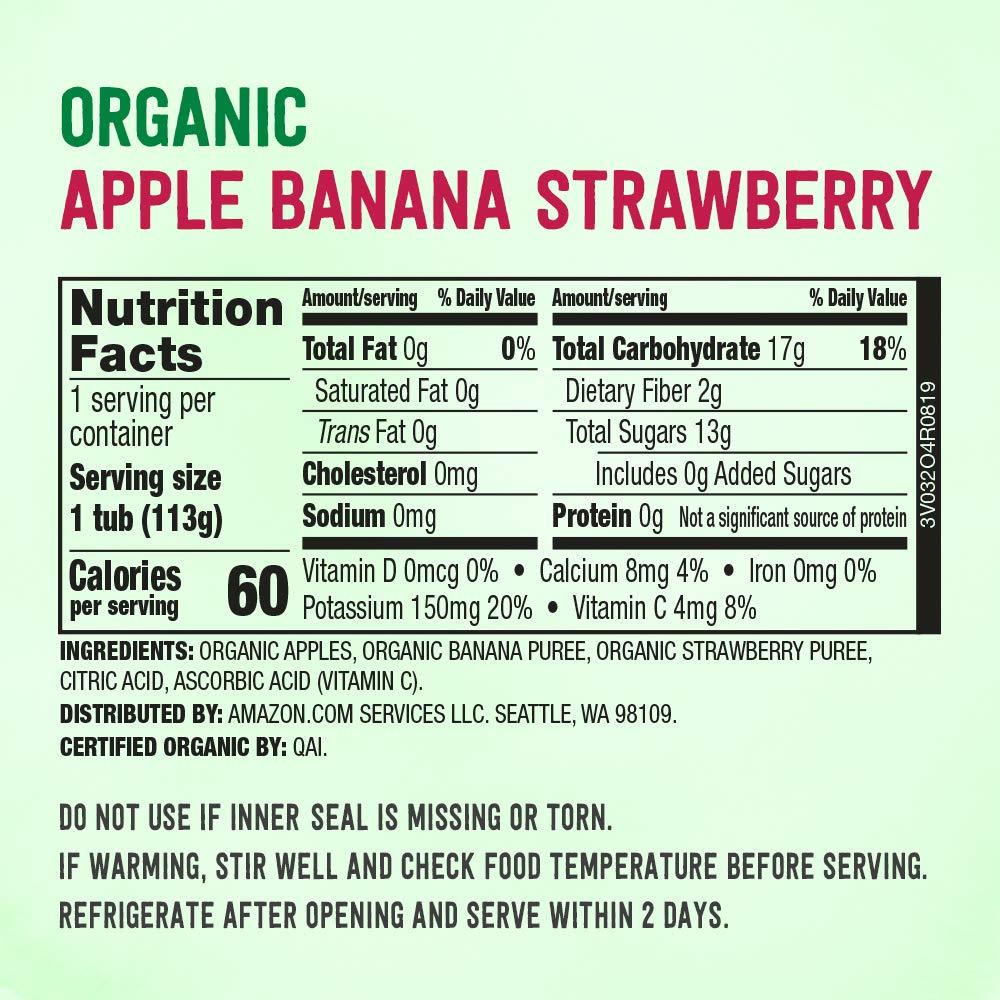 Amazon Brand - Mama Bear Organic Baby Food Apples, vegetarian, 4 ounce (Pack of 1) Cup(Apple Banana Strawberry)
