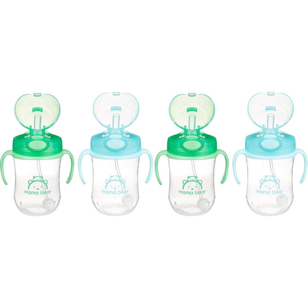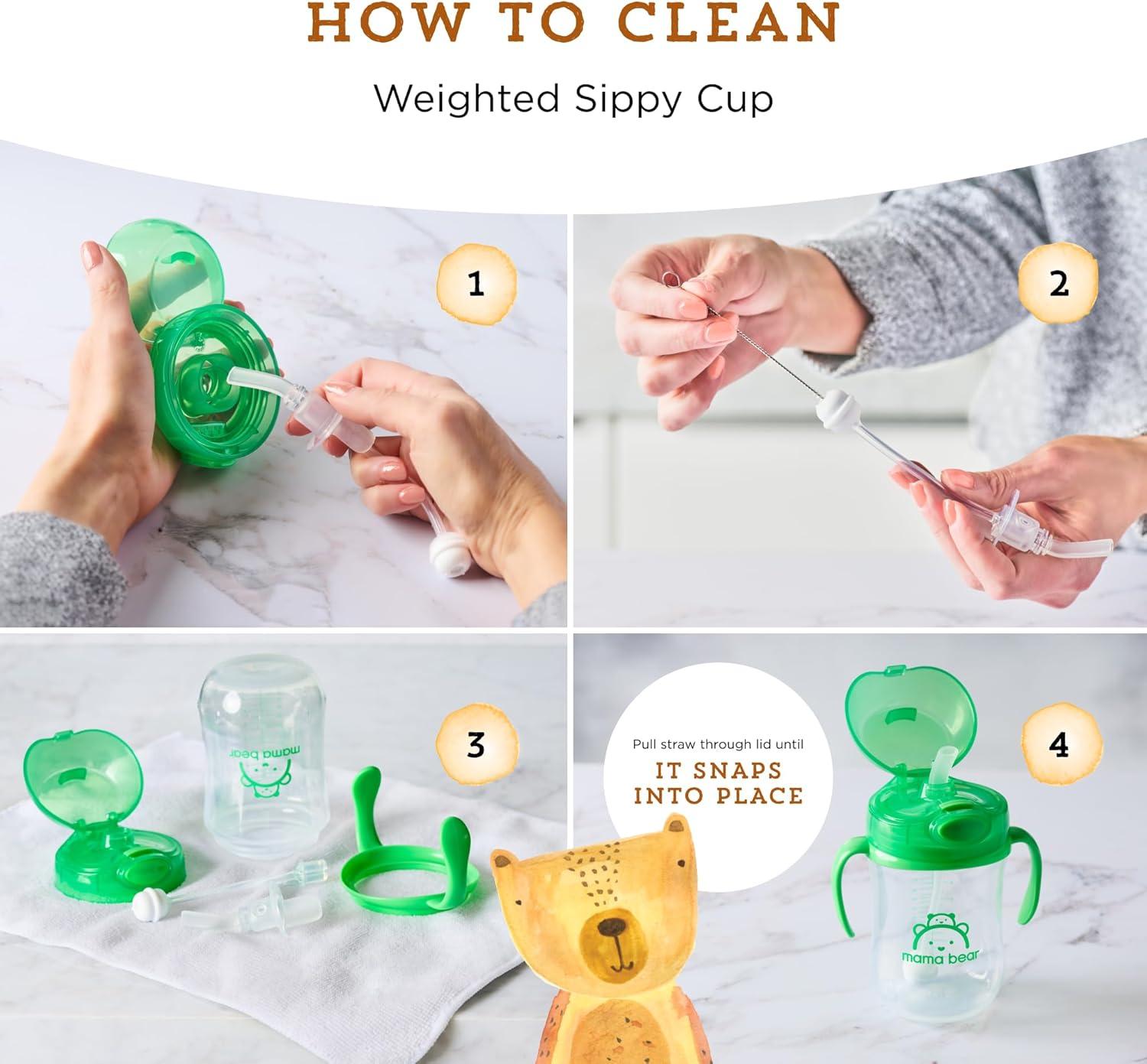 Amazon Brand – Mama Bear Weighted Straw Sippy Cup (Pack of 2) , Removable handles for your child's preference, Removable silicone straw for easy cleaning and use; diswasher safe
