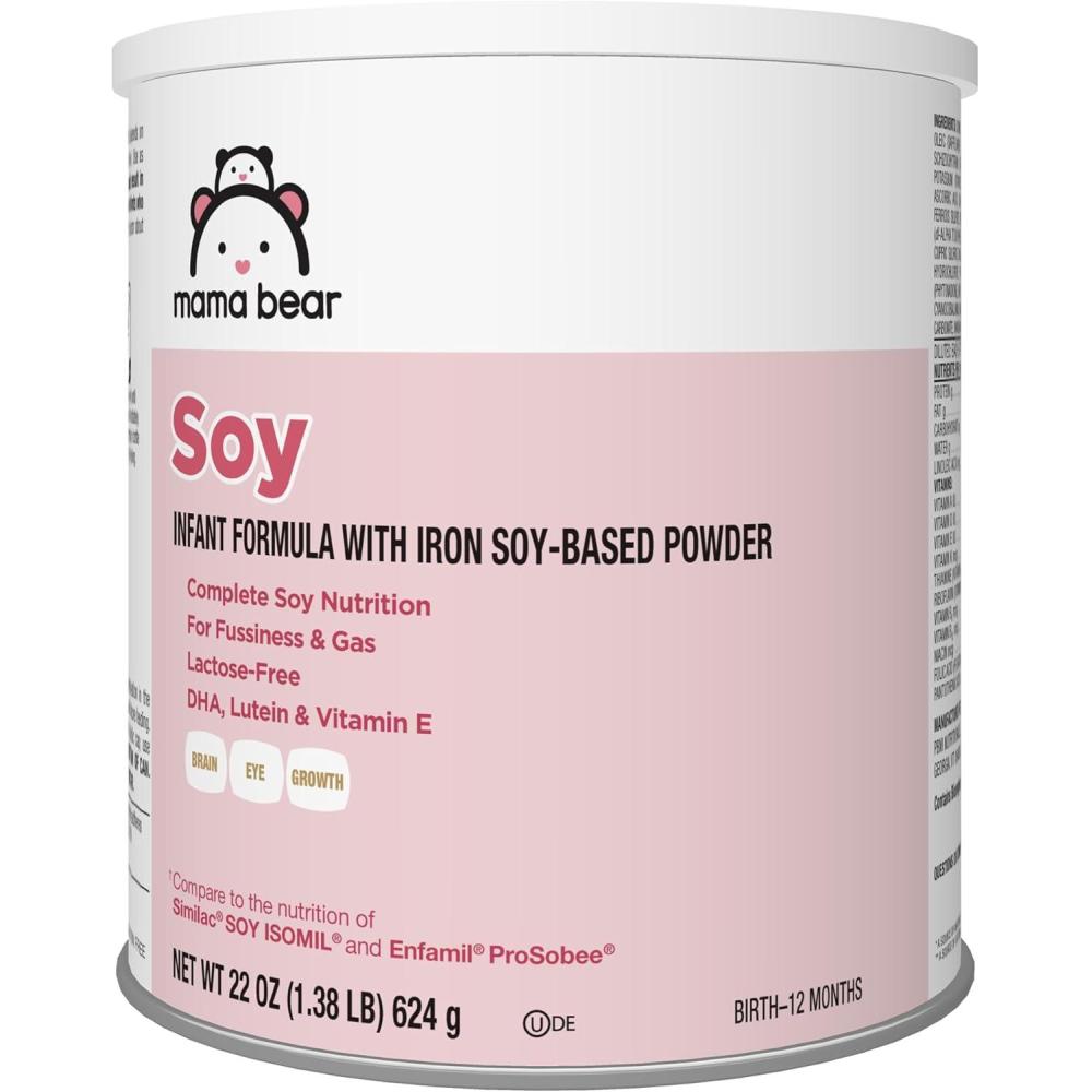 Amazon Brand – Mama Bear Soy Based Powder Infant Formula with Iron, for Fussiness & Gas, Lactose-Free, 22 ounce (Pack of 1)