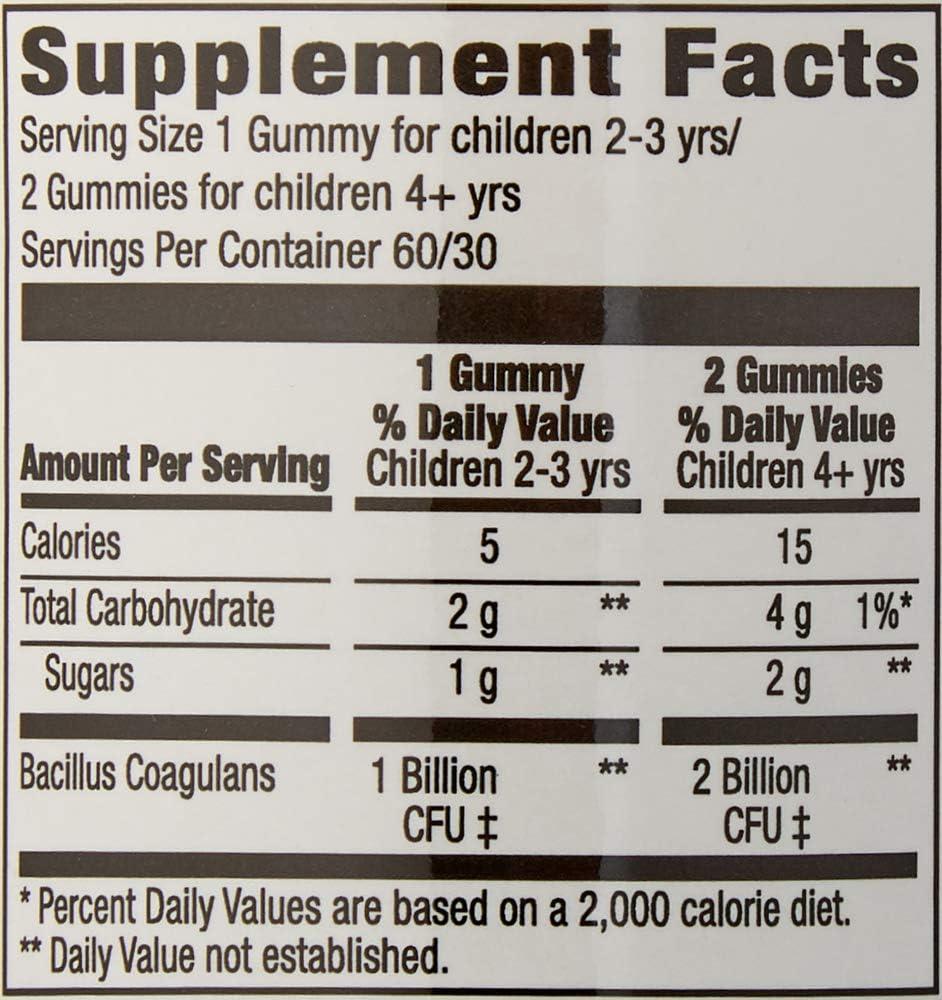 Mama Bear Probiotic Gummies have yummy berry flavors so they’re fun for kids to take. And they’re non-GMO, vegan, and gluten free. Kids 2–3 years of age take 1 gummy daily (1 billion CFU per serving), kids 4+ take 2 gummies daily (2 billion CFU per serving). Chew thoroughly. Keep bottle out of reach of children.