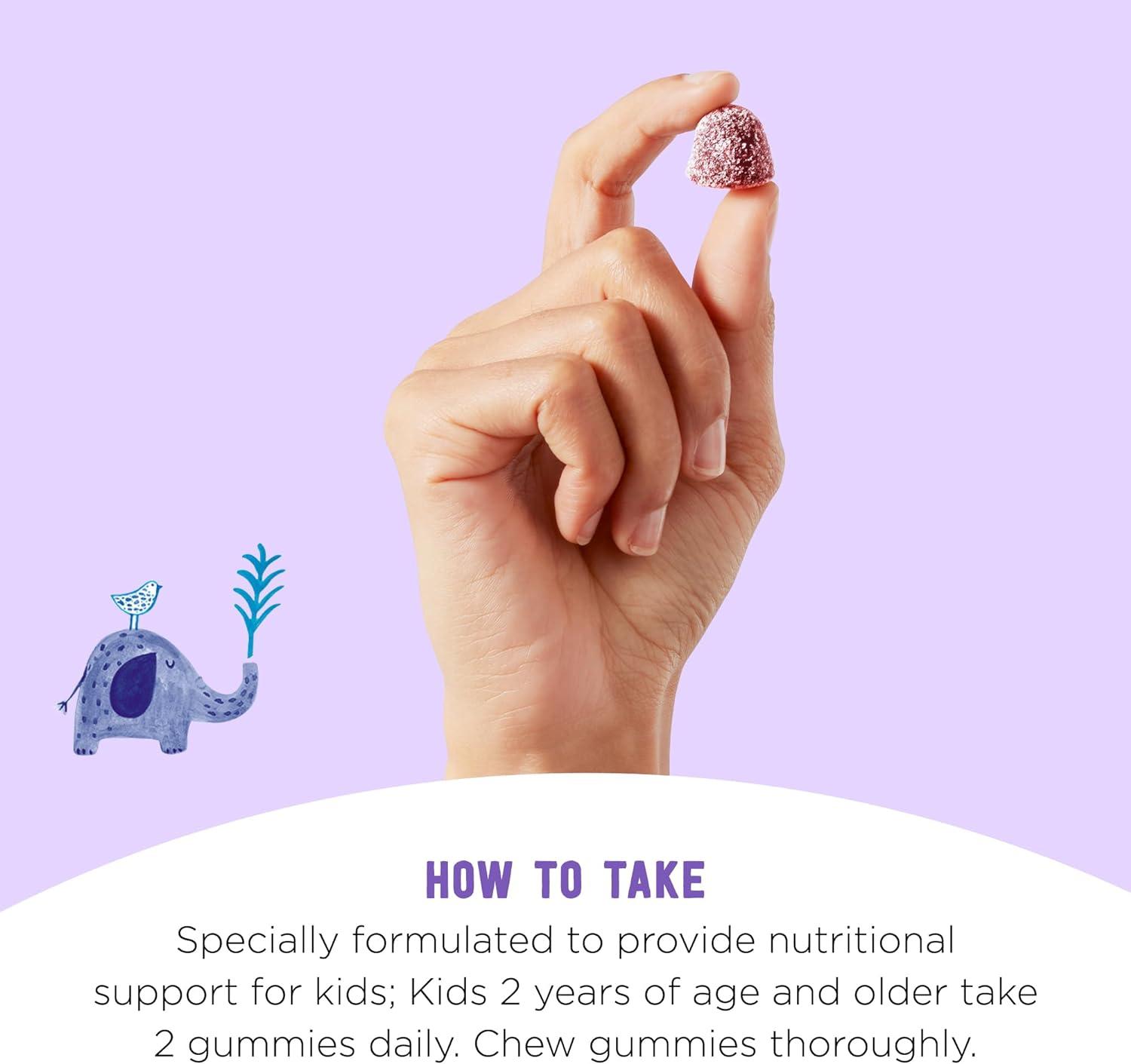 Chewable gummy with an elderberry flavor kids love. Kids 2 years of age and older take 2 gummies daily. Chew gummy thoroughly
