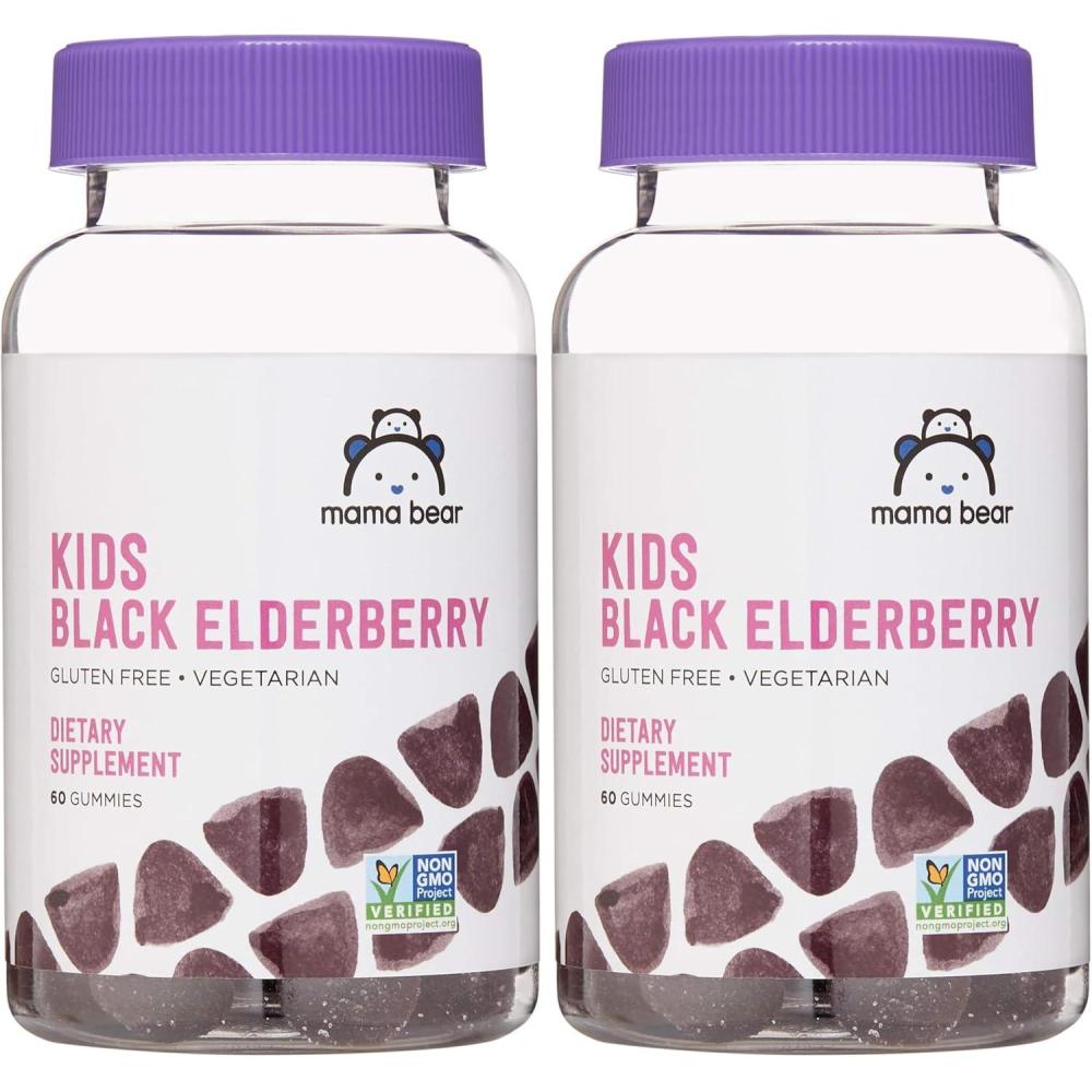 Amazon Brand – Mama Bear, Vegetarian Kids Black Elderberry Gummies 300 mg with Vitamins C, D, E and Zinc – Immune System Support – 60 Gummies (1 to 2 Month Supply), Non-GMO, Gluten Free(60 Count (Pack of 2))